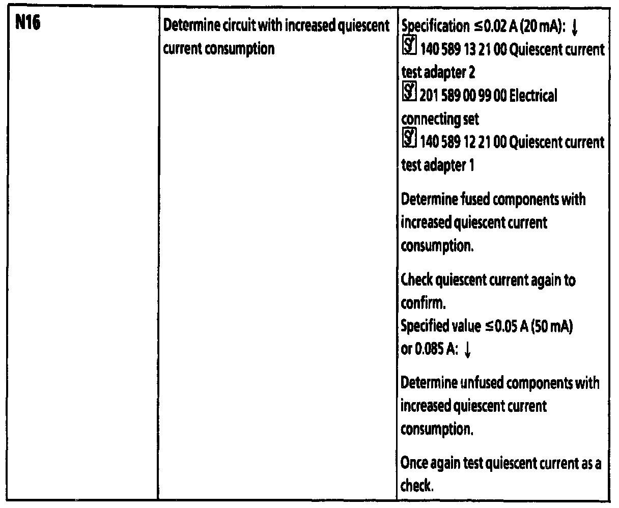 Total quiescent current <= 0.05 A or <= 0.085 A (vehicles with immobilizer) reached, end of test.