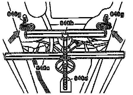 - Hook pulling device (040b) tool No. 201 589 11 31 00 with mounting pin (040g) onto frame floor next to the rear mount of the rear axle carrier and lock (arrows).