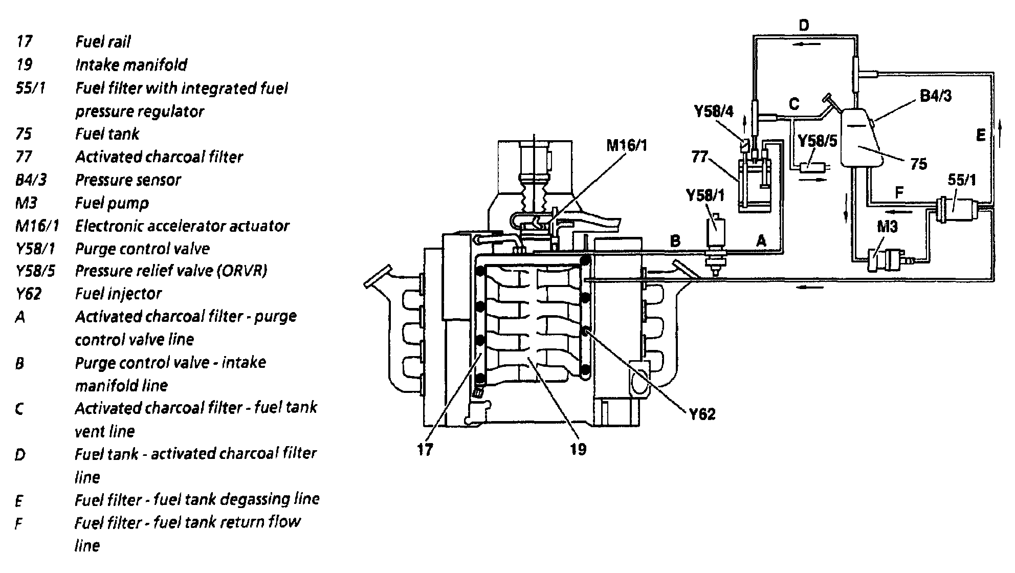 Connection diagram of evaporative emission control system engine 113 version (USA) as of 09/97
