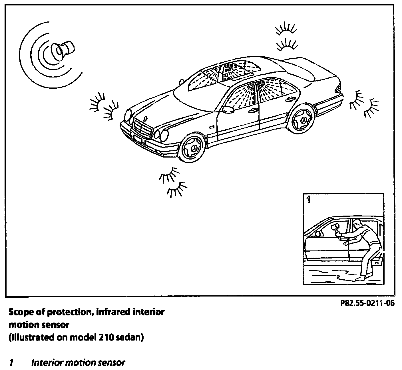 If an attempt is made to break into the car, e.g. a side window is broken, the reflection of the infrared rays is changed.