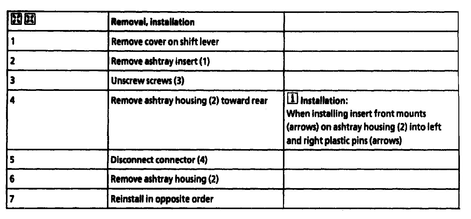 AR68.20-P-2400F Remove/Install Ashtray Housing at Front of Center Console