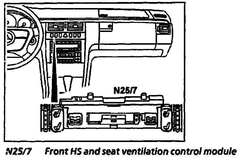The front HS and seat ventilation control module (N25/7) monitors and controls operation of the heated seat and seat ventilation.