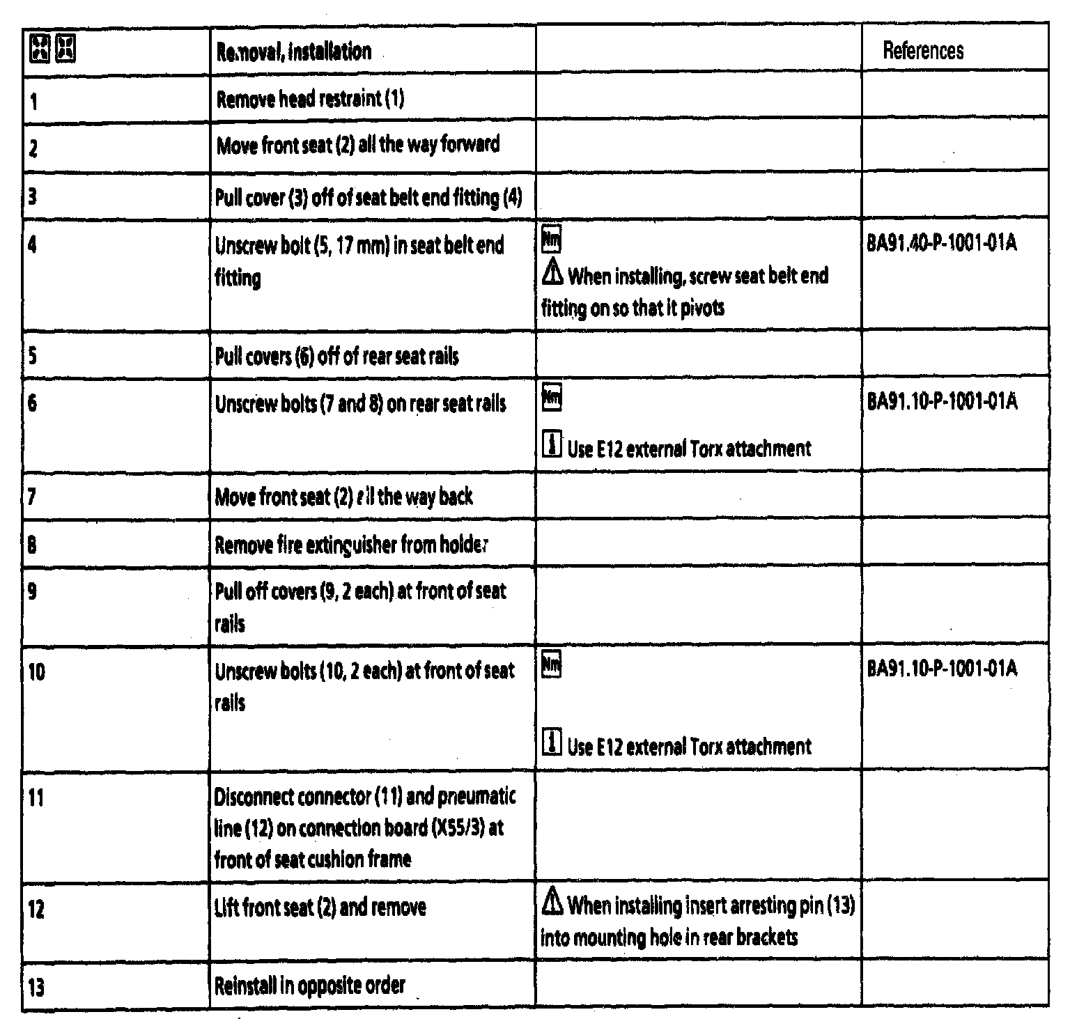 AR91.10-P-1000F Remove/Install Front Seats