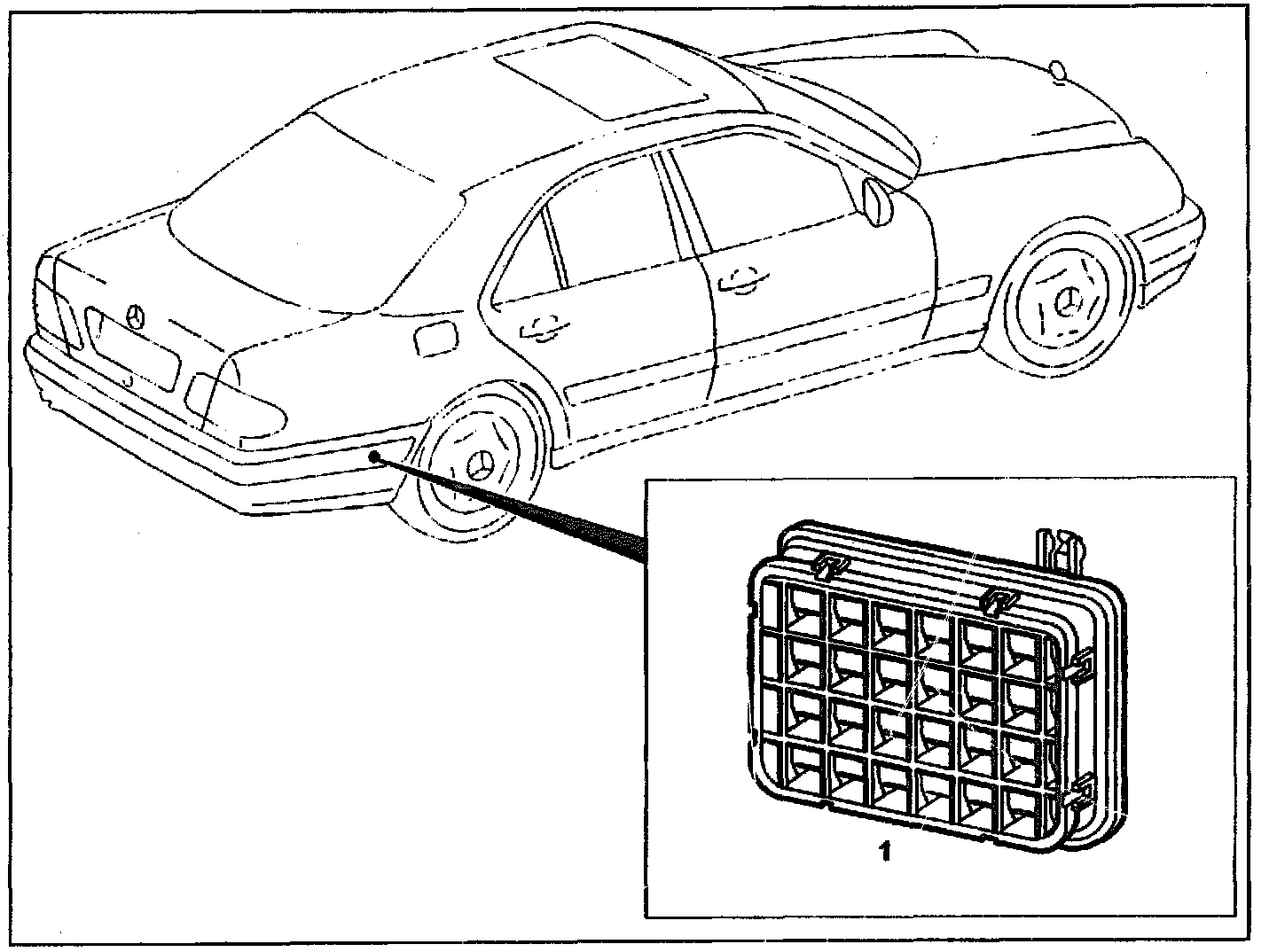 The rear vent (1) is located on the right rear fender behind the bumper.