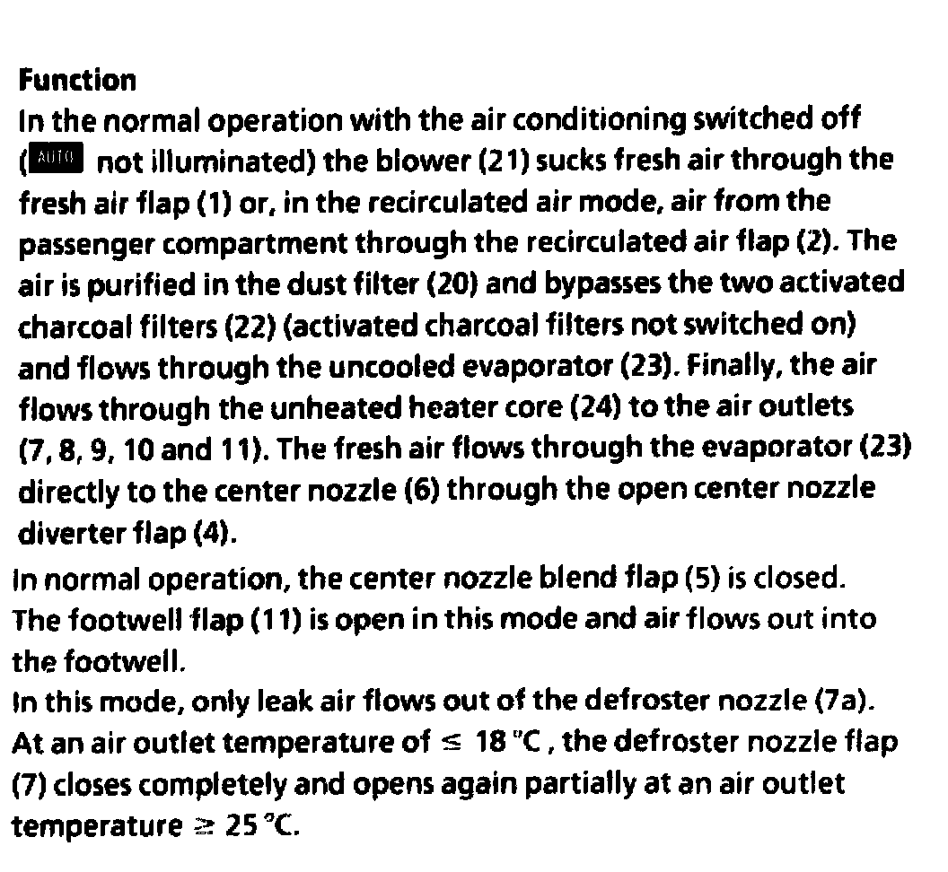 Automatic air conditioning (auto A/C) normal operation
