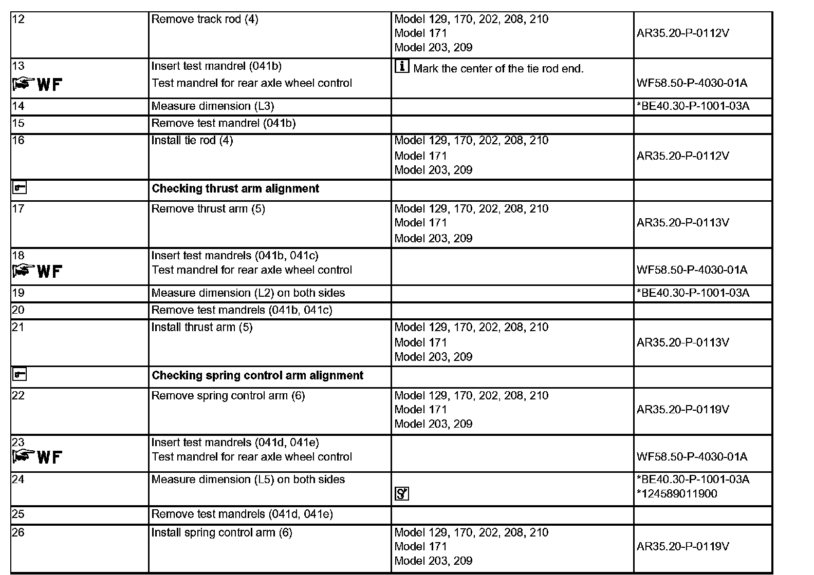 Rear axle check values - thrust/strut/camber strut, spring control arm, tie rod: