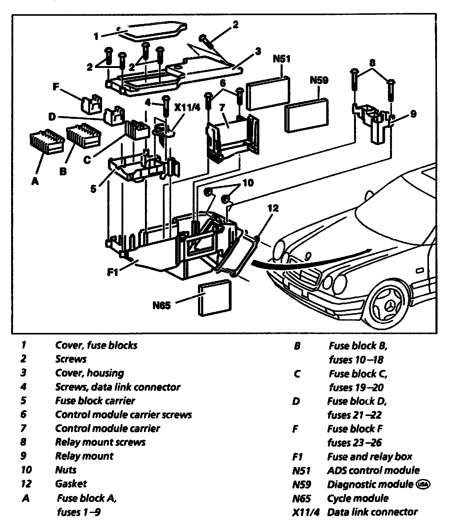 F1 - Fuse and Relay Box (In Engine Compartment)