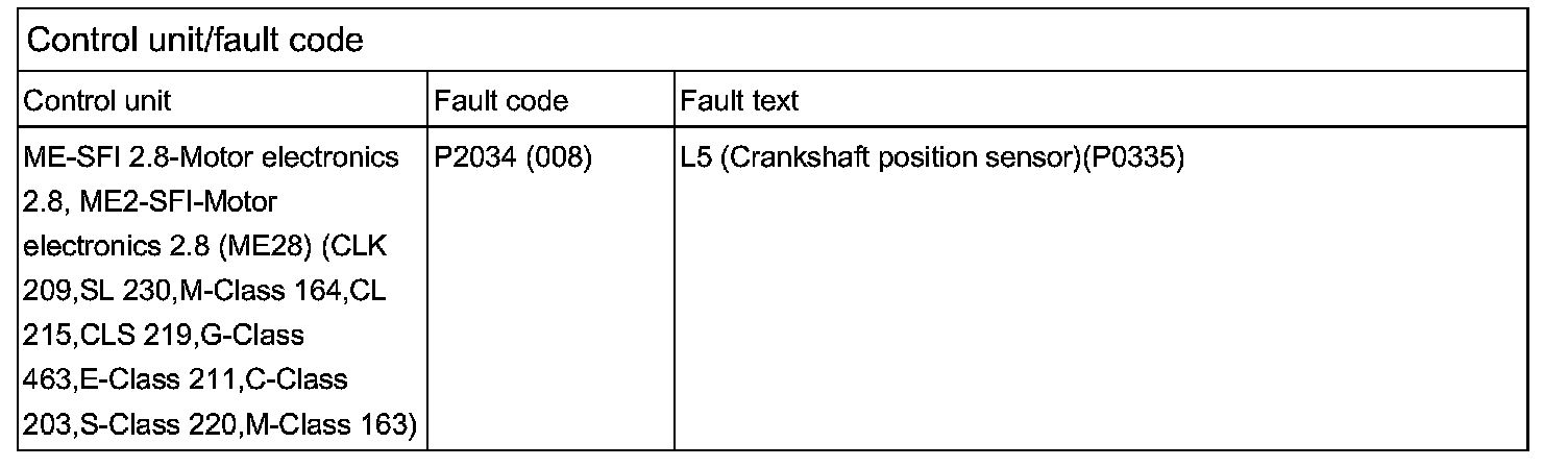 The cause is the camshaft sensor with part number A 004 153 9628 that was installed in production in the period from July 2004 to July 2005