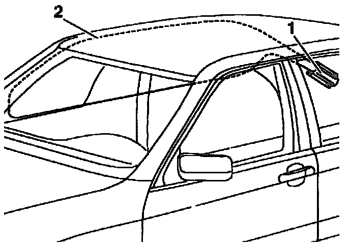 2 Air tube for window airbag on passenger side (inflated state)