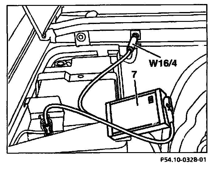 7 Route measuring cable (6) to the right out of the engine compartment.