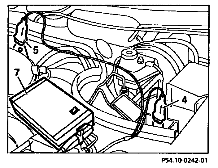 13 Switch off quiescent current retention unit (7), disconnect and remove from engine compartment.