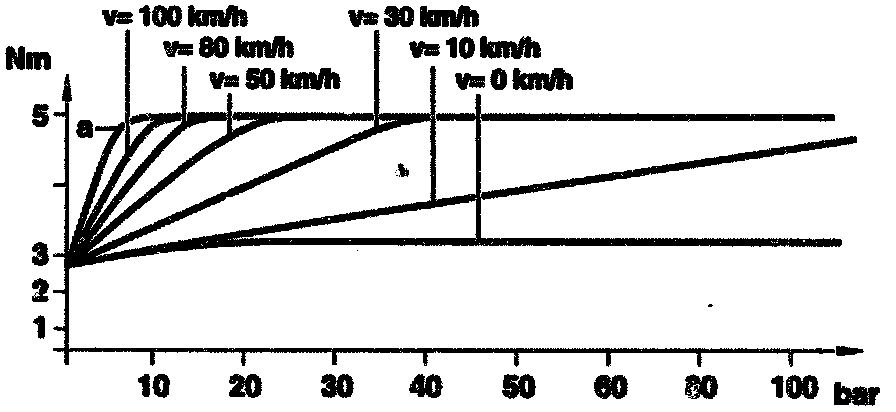 The task of the electronic control of the Speed-sensitive Power Steering (SPS) (integrated in the Electronic Traction System (ETS), Acceleration Slip Regulation (ASR) or Electronic Stability Program (ESP) control module) is to adjust a set hand force (K) at the steering wheel corresponding to the respective vehicle speed.