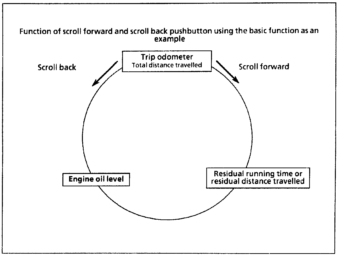 - Press the system select pushbutton (S110s3) until the basic function (trip odometer, total distance travelled) is displayed