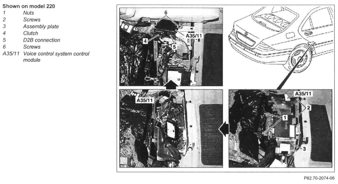 NOTE: If the voice control system control module (A35/11) should be removed for a longer period of time, install adapter for closing the D2B ring.