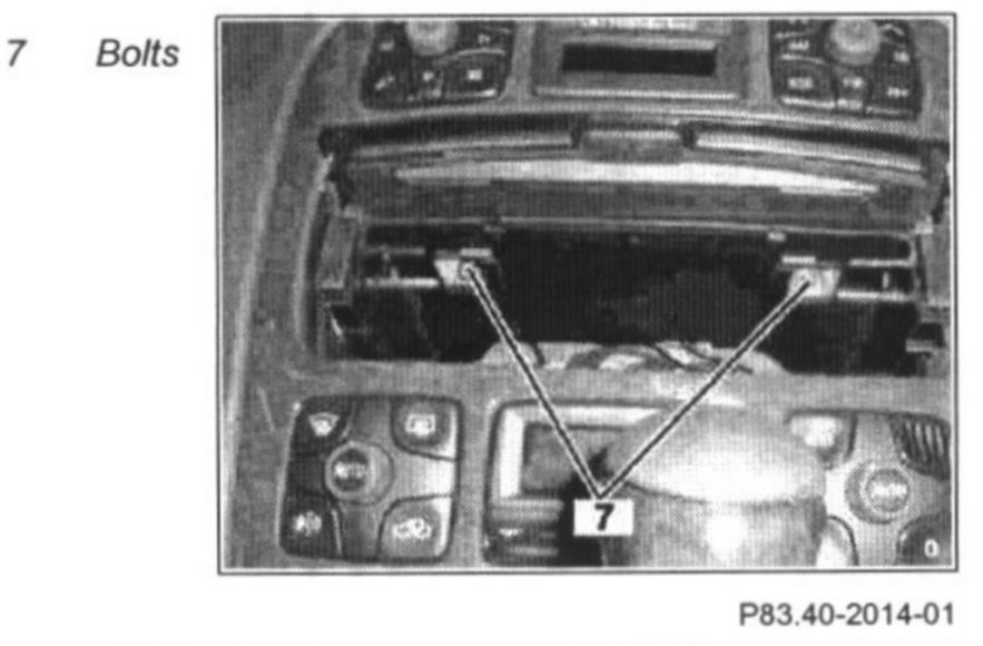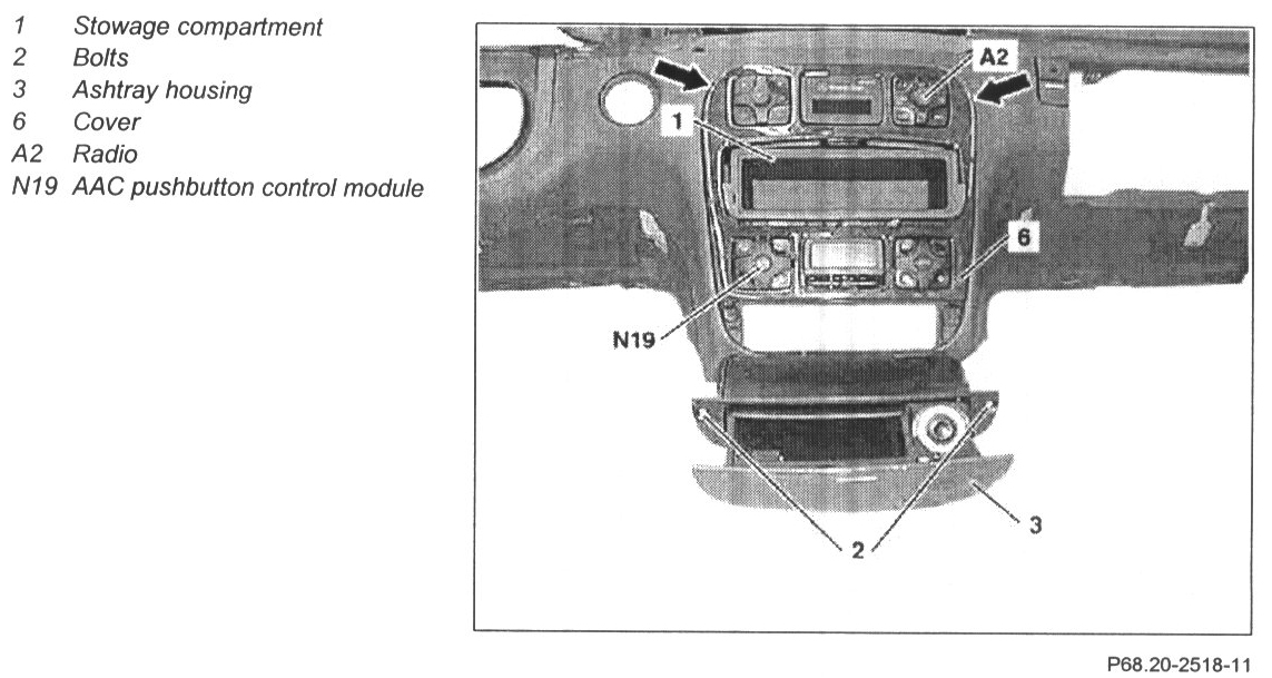 5.1 Pull cover (6) out with air conditioning pushbutton control module (N19) and radio (A2)