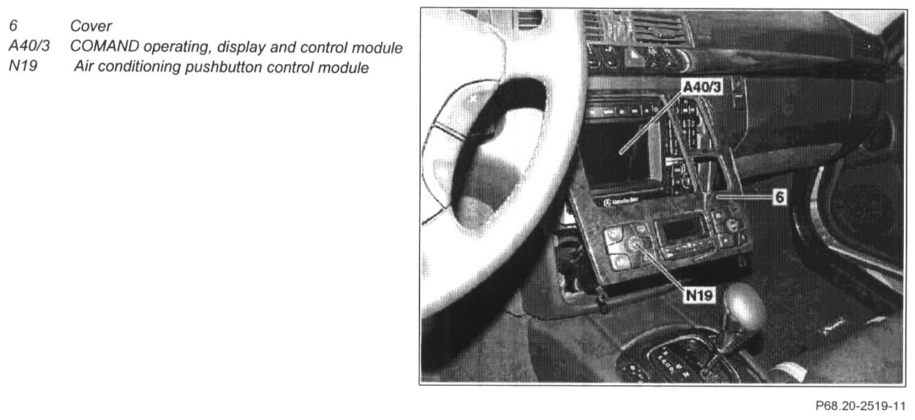 5.2 Pull cover (6) out with air conditioning pushbutton control module (N19)