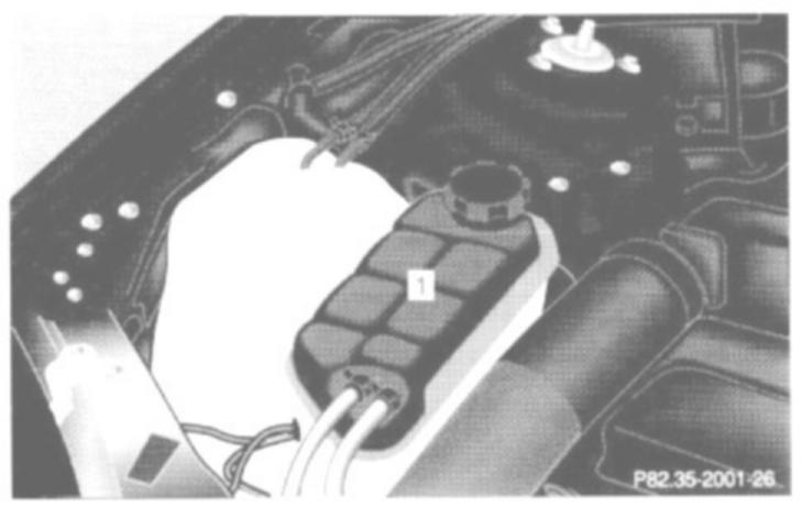 ^ Do not remove pressure cap on coolant reservoir if engine temperature is above 194°F (90°C). Allow engine to cool down before removing cap. The coolant reservoir contains hot fluid and is under pressure.