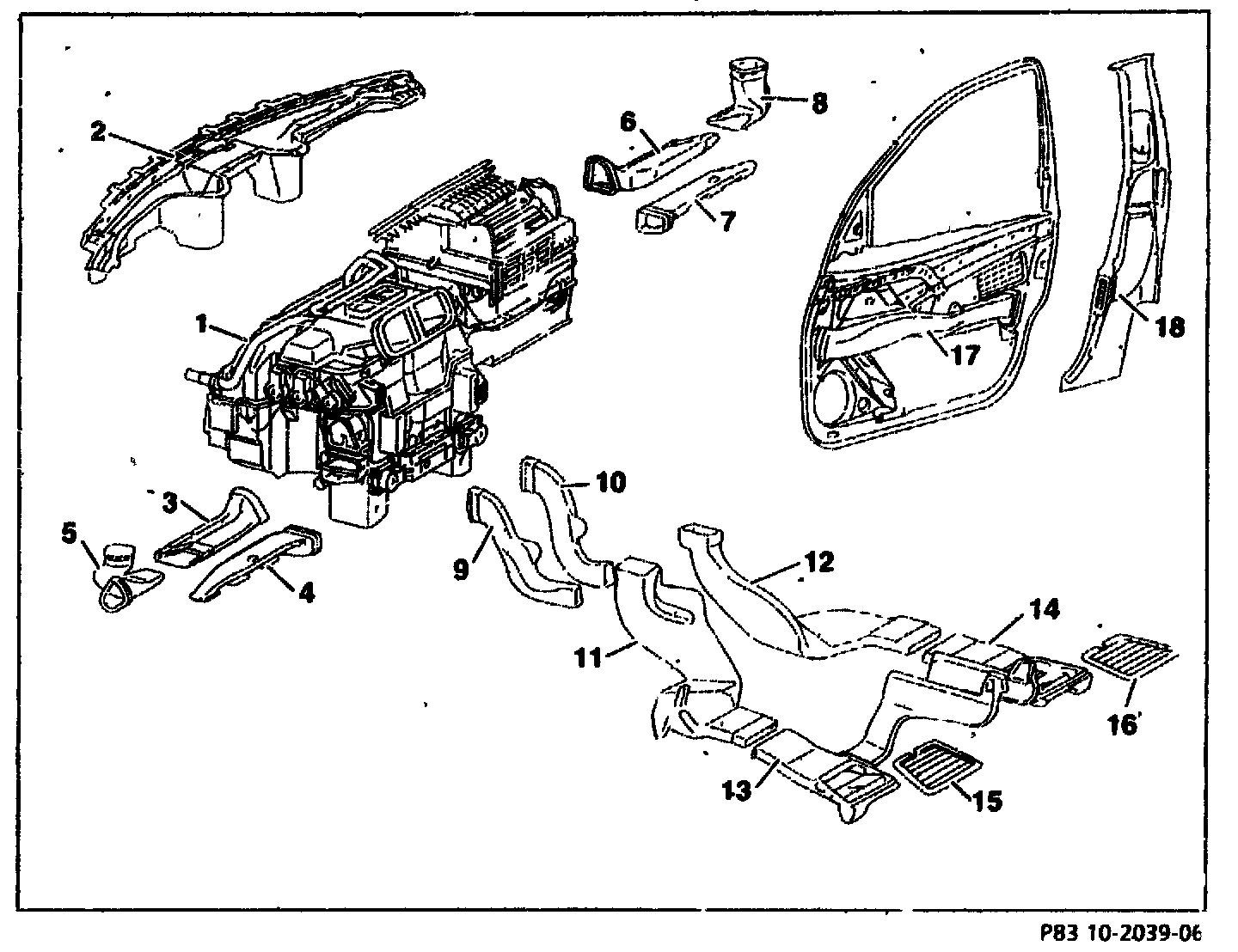 - The air ducts (3, 5, 6, 8) for the side/door/rear side defroster outlets are located under the instrument panel.
