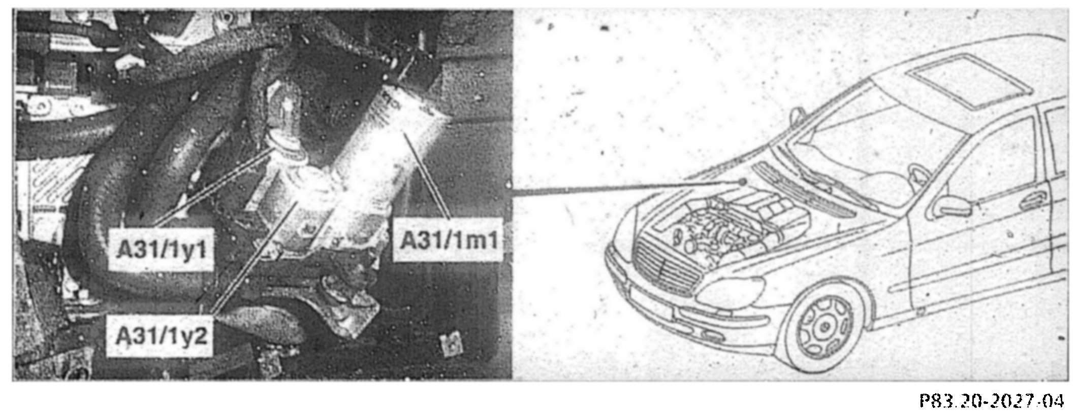 The duovalves (A31/1yl, A31/1y2) are located in the engine compartment at the right rear next to the coolant circulation pump (A31m1)