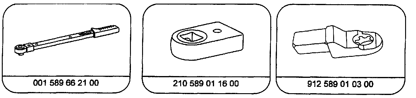 5. Assemble torque wrench as shown in Figure 2, using the following tools: 1/2 inch extension of suitable length, 210 589 01 16 00 special extension piece, and 912 589 01 03 00 modified (crowfoot) boxed end wrench.