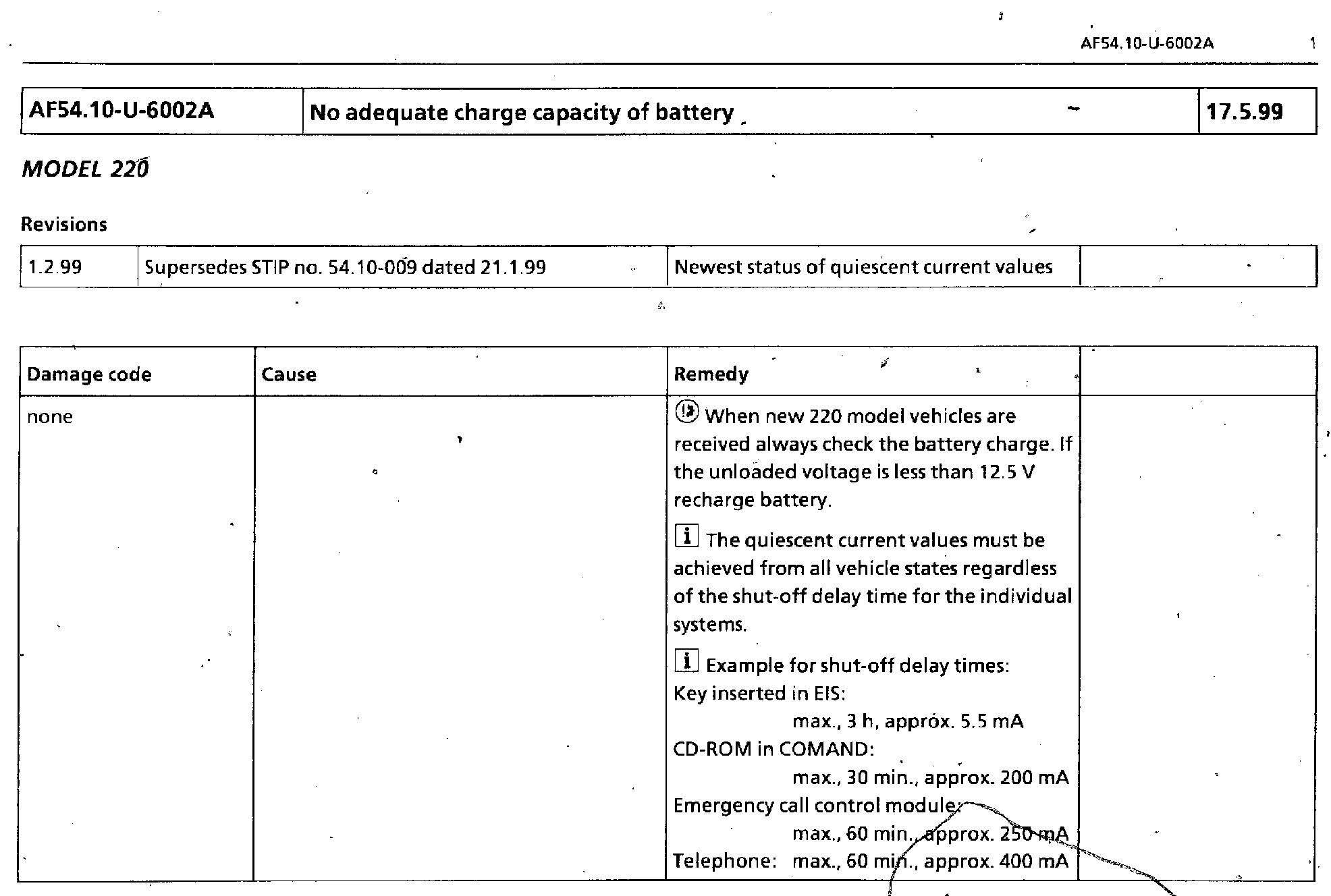 Inadequate Battery Charge (Current Drain Specifications)