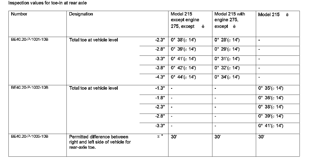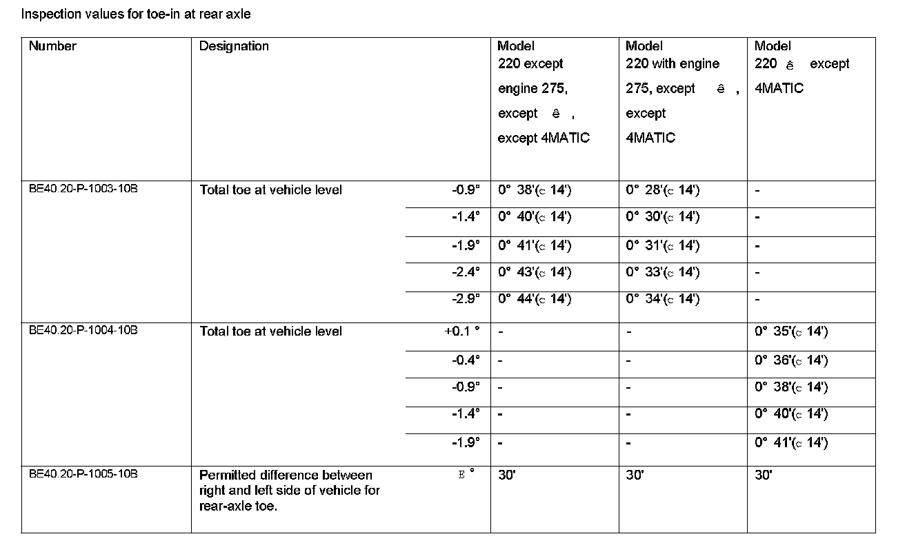 AR40.20-P-0261I Adjust rear-axle toe - except CODE (979) Special protection version (model 220)