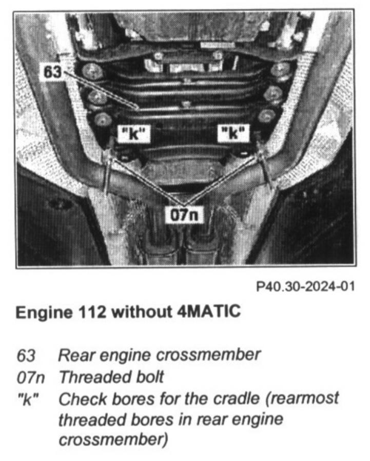 - Model 215, model 220 without 4MATIC: Insert threaded bolts (07n) into the rearmost threaded holes "k" in the mounting rail.
