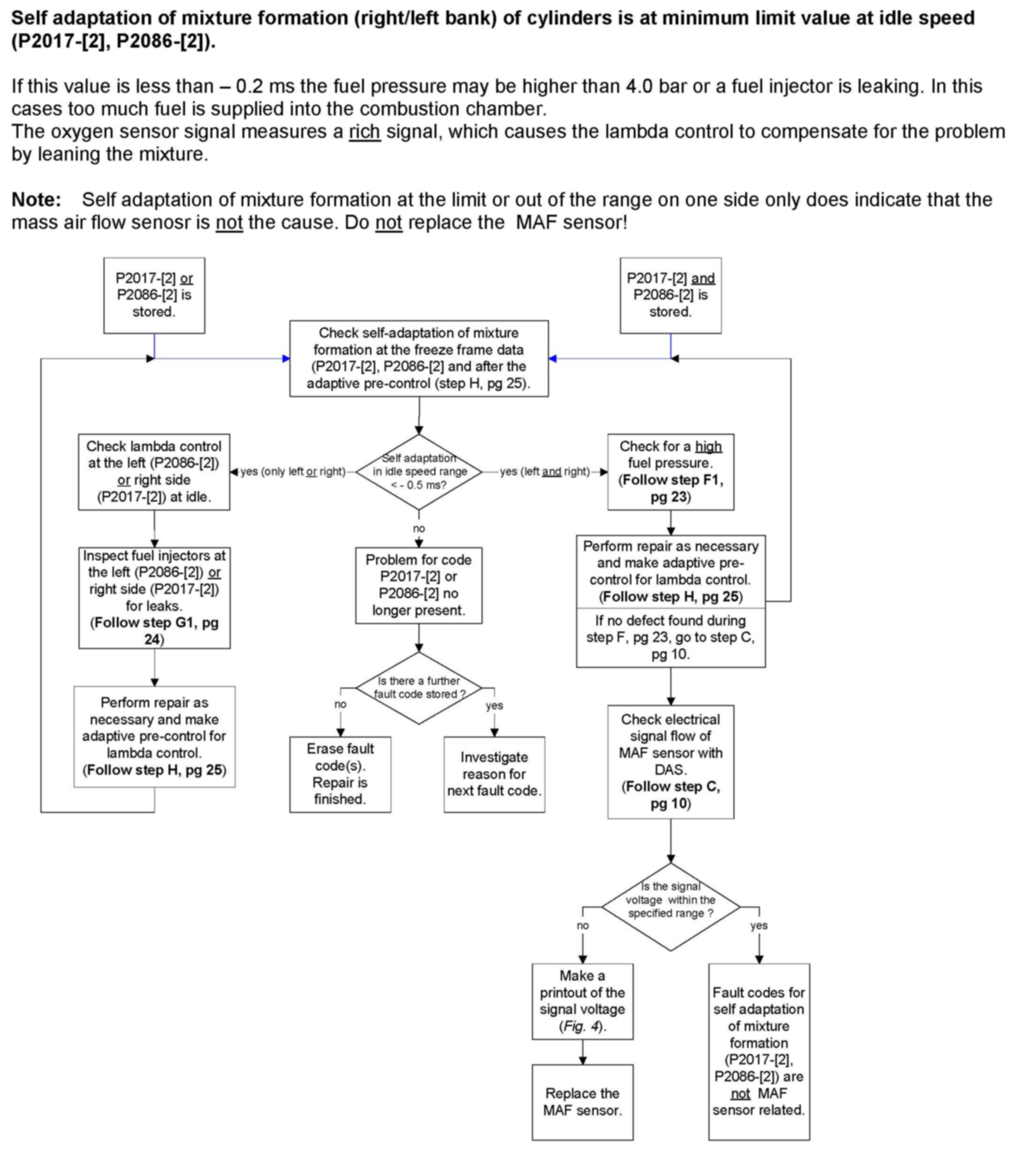 Description of test steps of failure analysis in case of a adaptation of mixture formation fault code