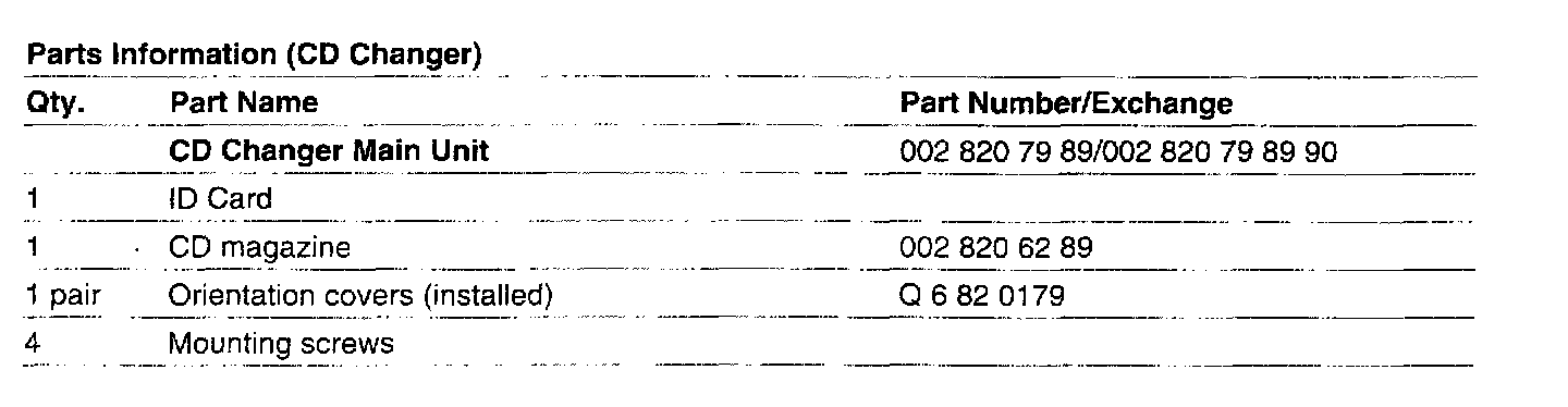 PARTS INFORMATION (CD CHANGER)