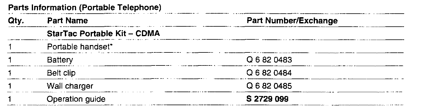 PARTS INFORMATION (PORTABLE TELEPHONE)