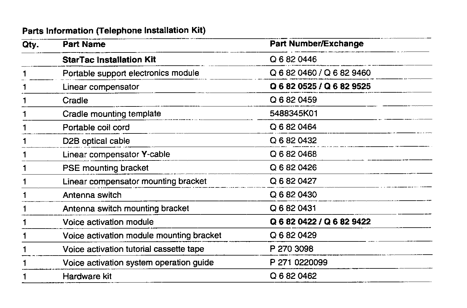 PARTS INFORMATION (TELEPHONE INSTALLATION KIT)