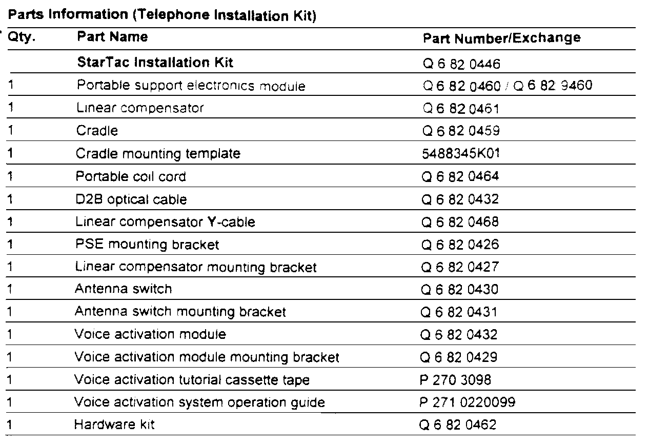 PARTS INFORMATION (TELEPHONE KIT)