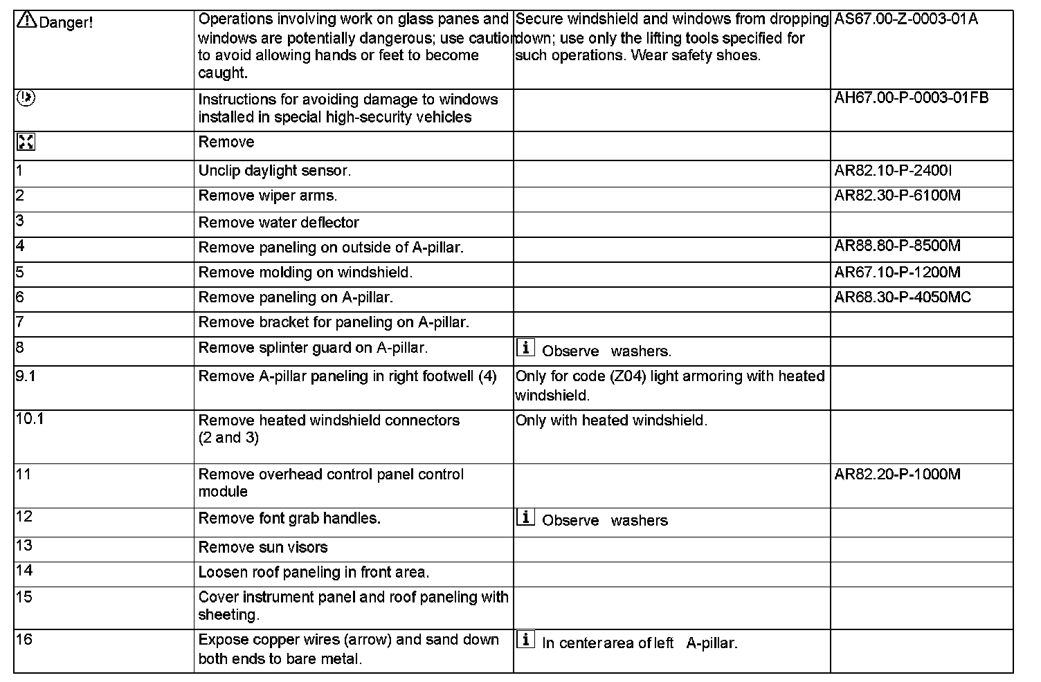AR67.10-P-1000MB Remove/Install Windshield