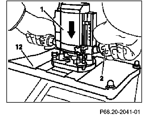 6. Switch on manual router (1) and press down on both handles against stop. Tighten arresting knob (2).