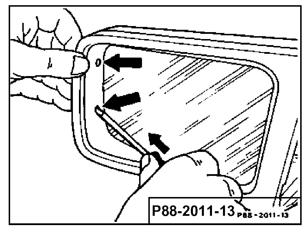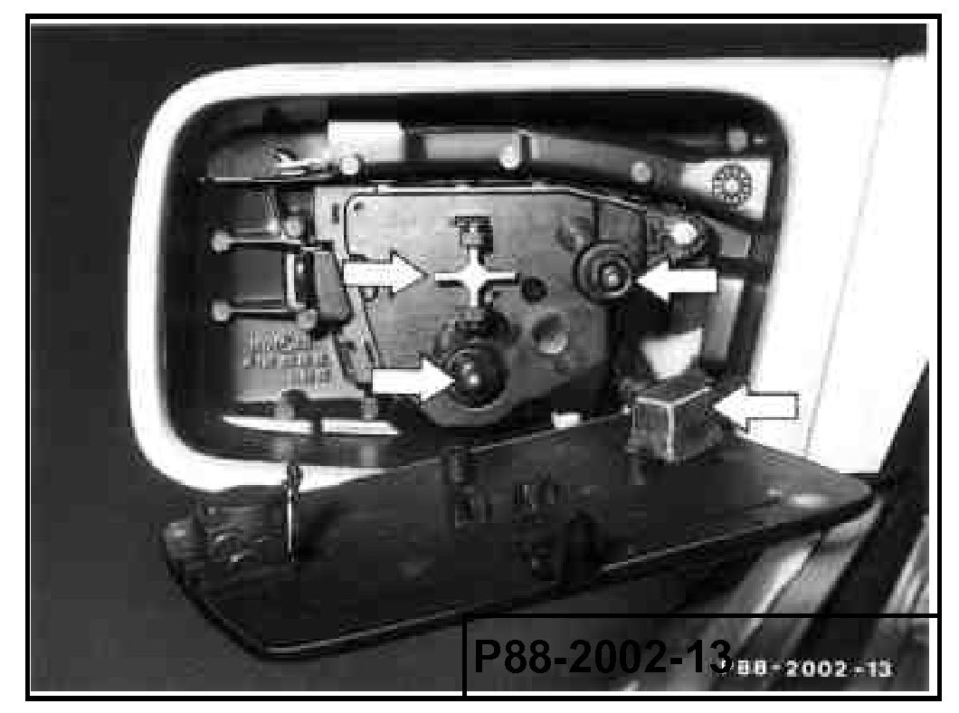 NOTE: The mirror glass can only be installed when the drive tappets for the electric drive are retracted and aligned for acceptance of the mirror glass.