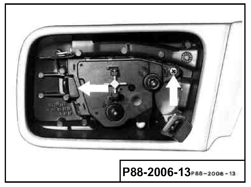 1 Press mirror glass out with plastic wedge, disconnect plug for mirror heater.