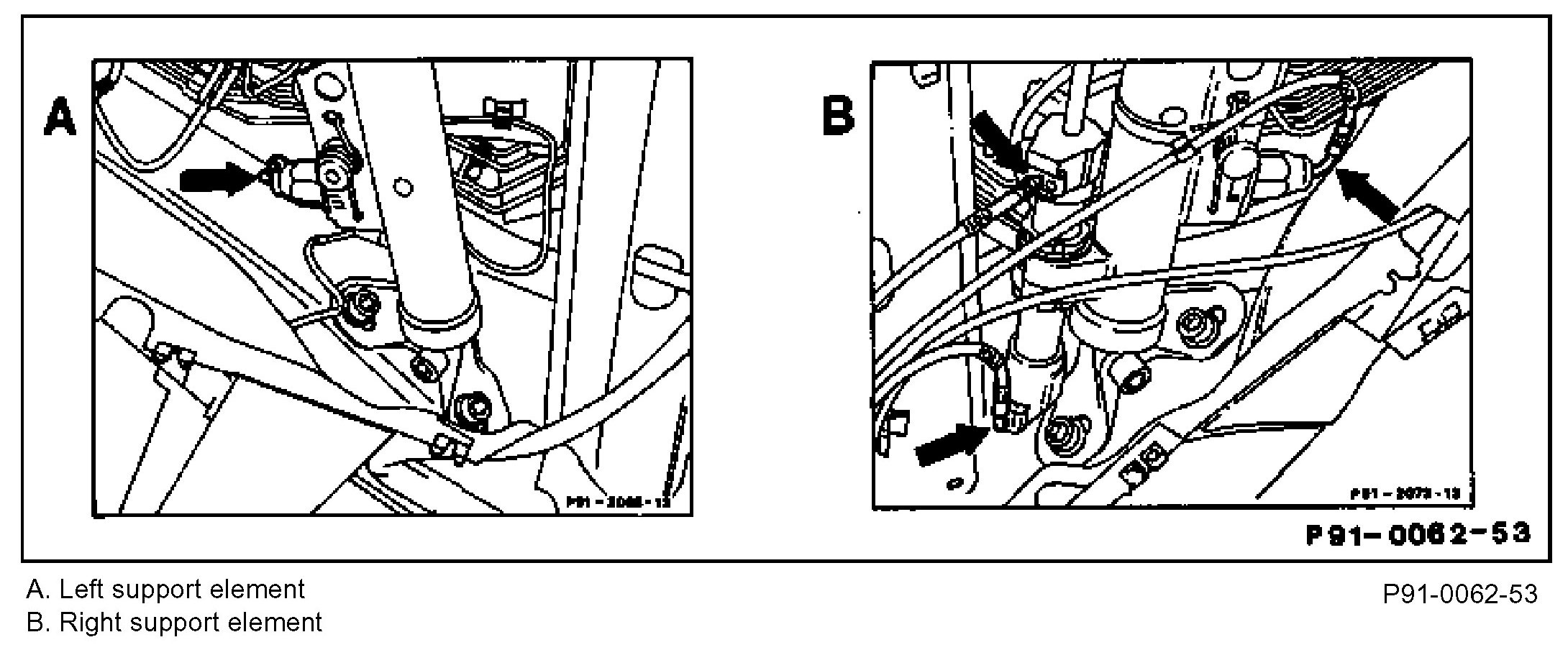 5 Remove hydraulic lines on left and right support elements.