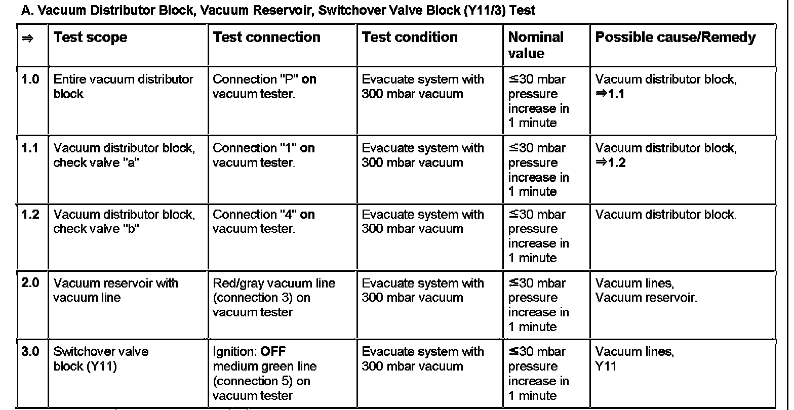 A. Vacuum Distributor Block, Vacuum Reservoir, Switchover Valve Block (Y11/3) Test