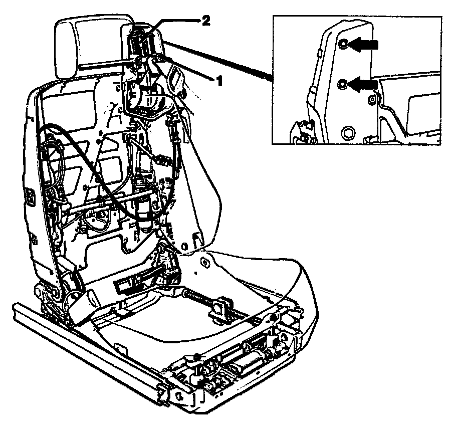 Head restraint on front seat removed. Remove/Install Front Seat Head Restraints