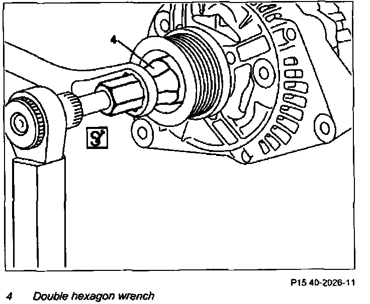 NOTE: To hold generator shaft (2), insert screwdriver bit through double hexagon wrench (4).