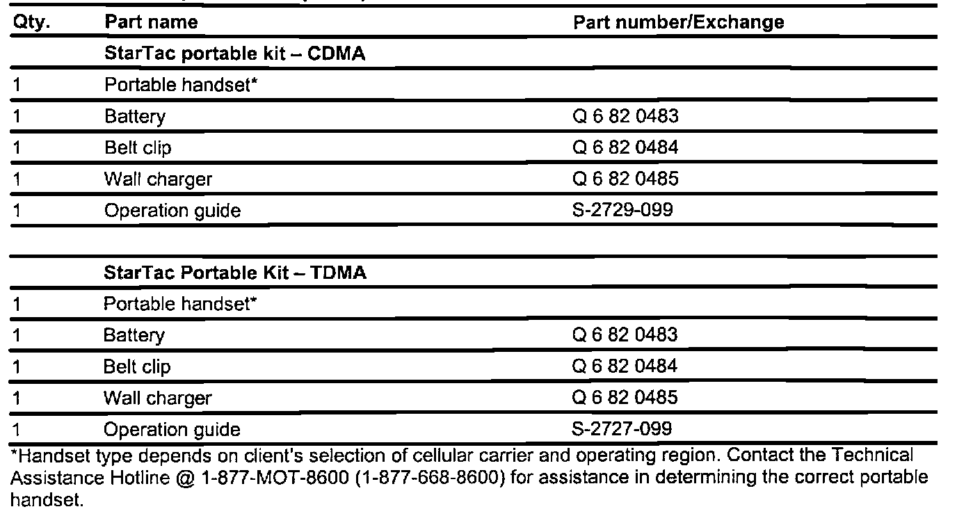 Parts Information (Portable telephone)