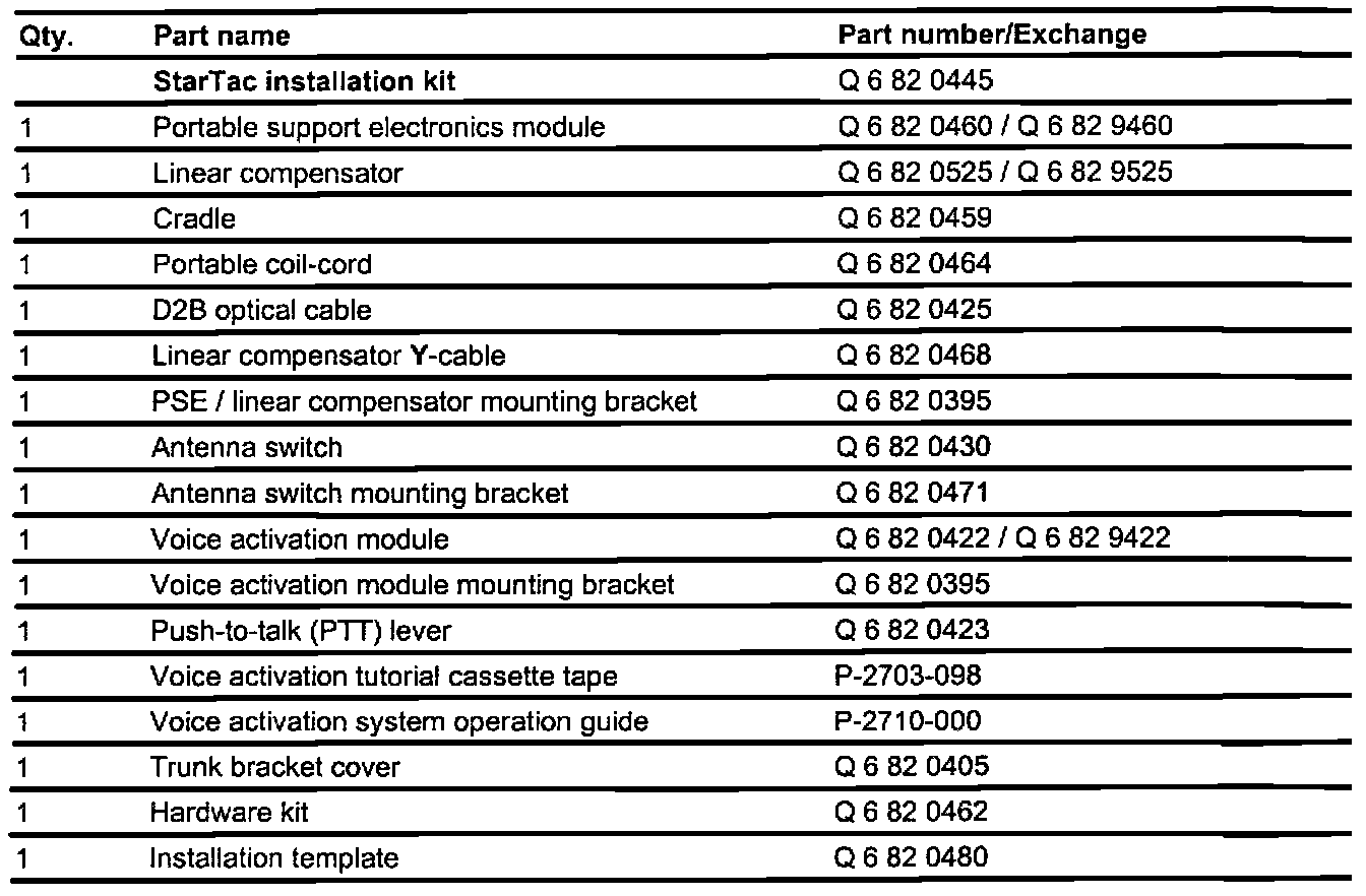 Parts Information (Telephone installation kit)