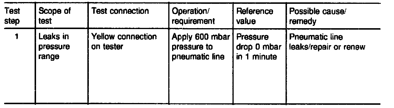 1 When checking for leaks on individual lines, connect one end of the line to the tester and seal the other end with a sealing cap 000 987 11 45.