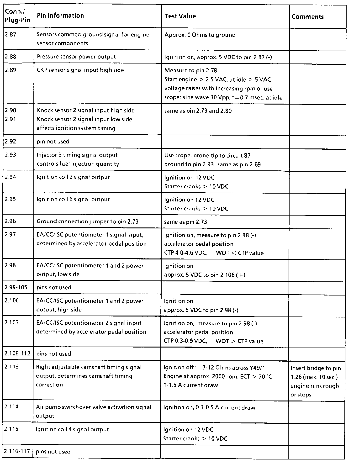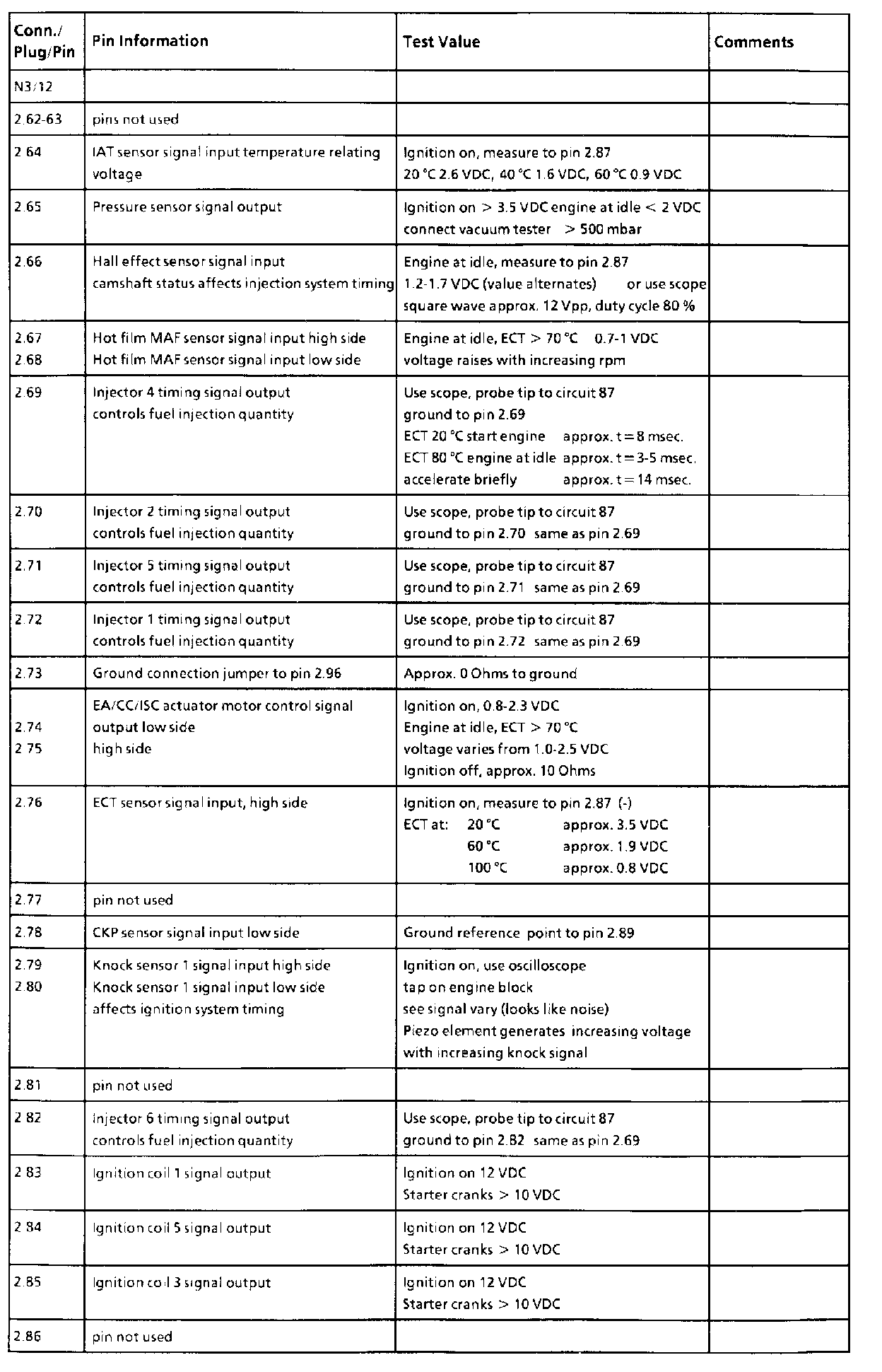 All values measure to ground unless otherwise noted.