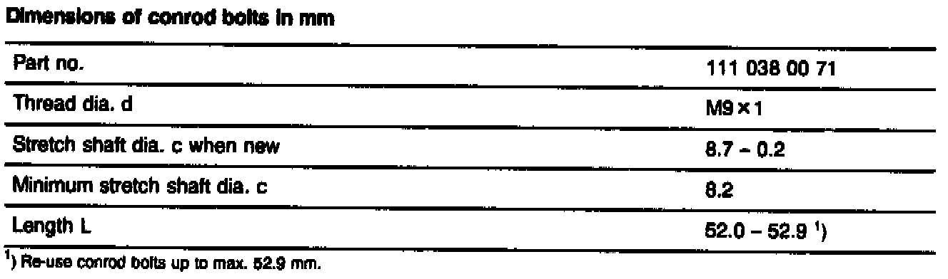 From 05.93 modified conrod bolts are installed. The tightening torque remains unchanged. Stretch shank bolt with rolled head.
