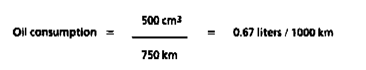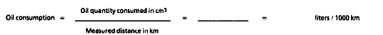 Oil consumption = oil quantity consumed in cm(3)/Measured distance in km = = liters/1000 km
