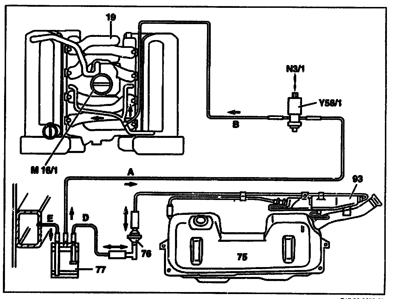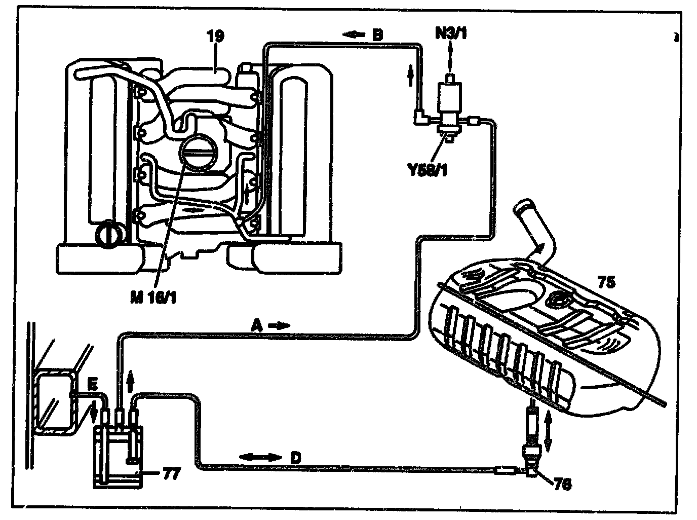 Connection diagram of LH-SFI evaporative emission control system model 124 with engine 119.97