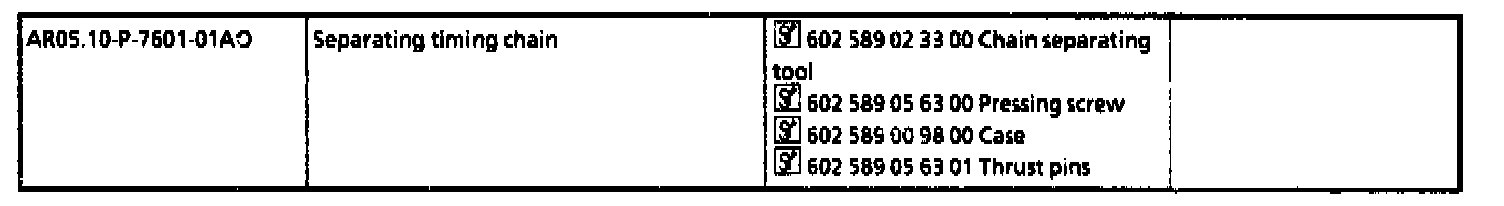 2 Screw thrust spindle (02) 602 589 05 63 00 together with thrust pin (02a) 602 589 05 63 01 into the chain separation tool (03) 602 589 02 33 00.