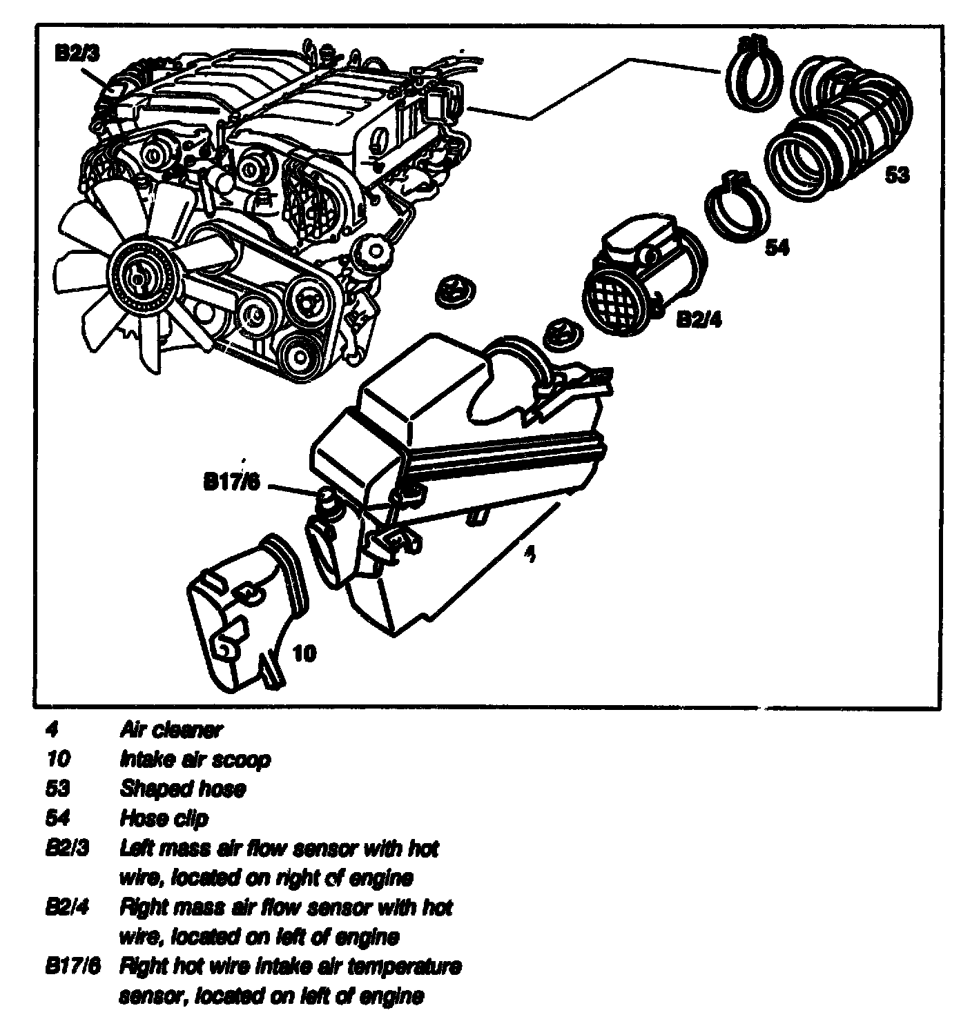 Shown on engine 120.900/81 in model 140, Air cleaner positioned on left of engine