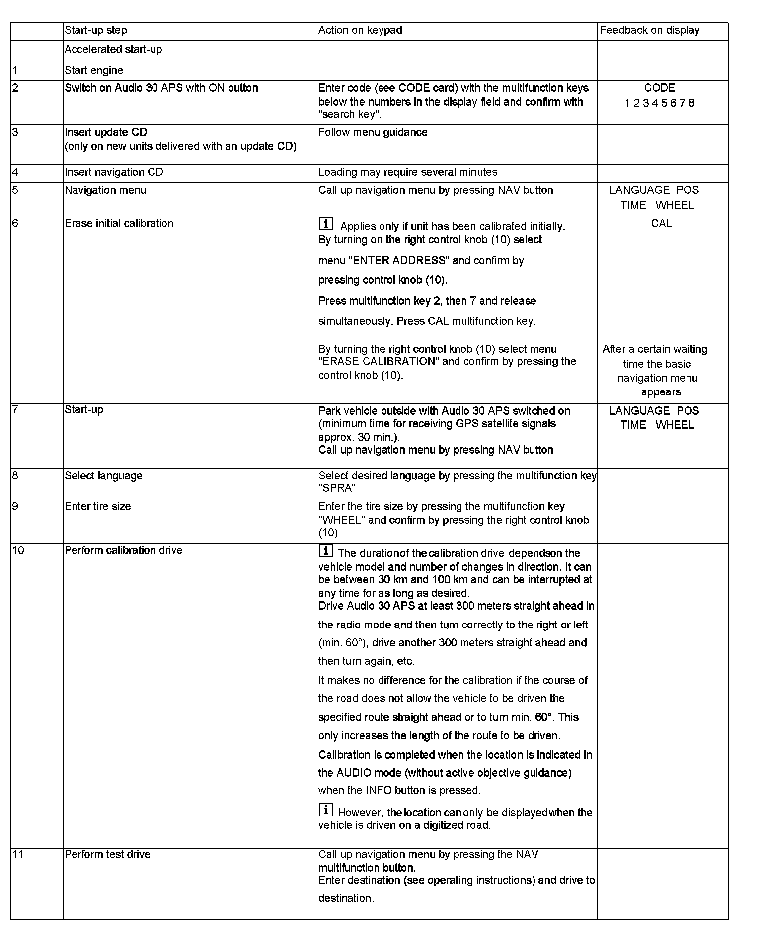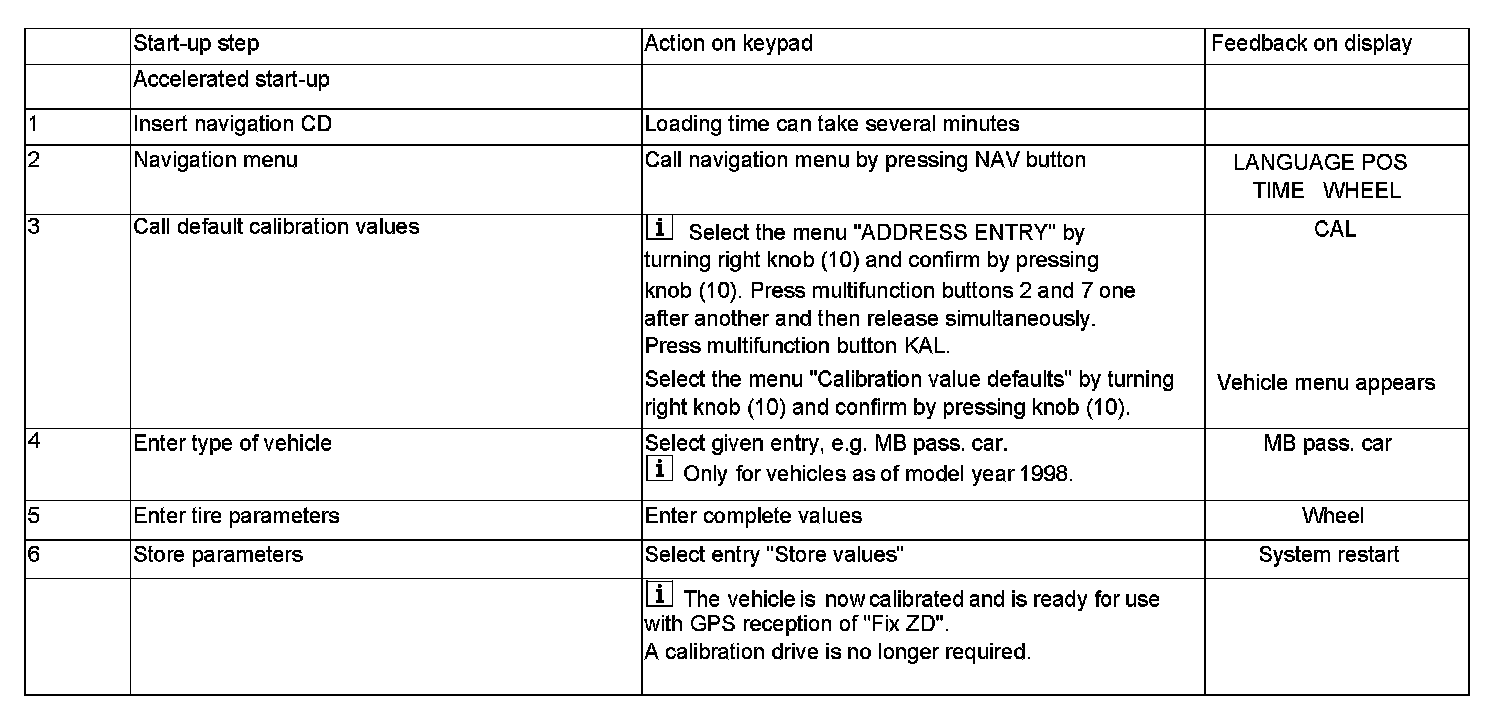 Units with navigation CD "Audio 30 APS 3.0" can be started up with accelerated calibration on vehicles as of 1998 (see "Accelerated Start-Up").